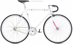 Fuji Feather 2019 retro banecykel med friløb og kaliberbremser på begge hjul, samt tåklip pedaler med spænde.